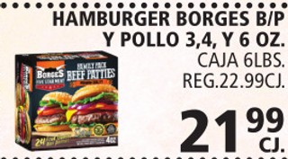 HAMBURGER BORGES B/P Y POLLO 3,4 Y 6 OZ CAJA 6LBS