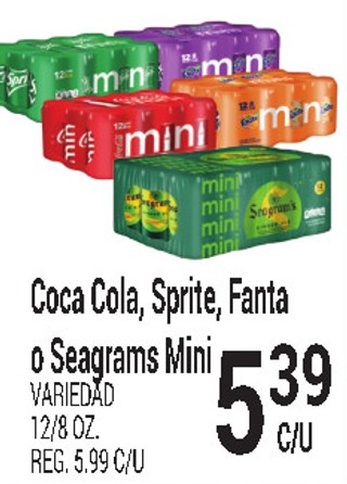 Cola Cola, Sprite, Fanta o Seagrams Mini VARIEDAD 12/8 OZ.