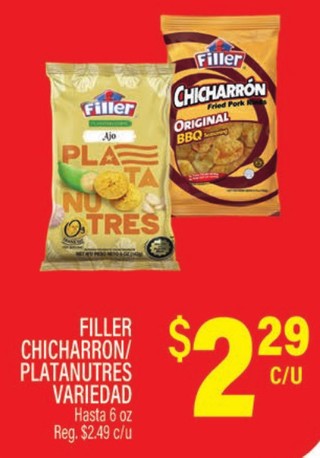 FILLER CHICHARRON/PLATANUTRES VARIEDAD Hasta 6 oz