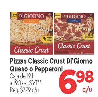 Pizzas Classic Crust Di'Giorno Queso o Pepperoni Caja de 19.1 a 19.3 oz