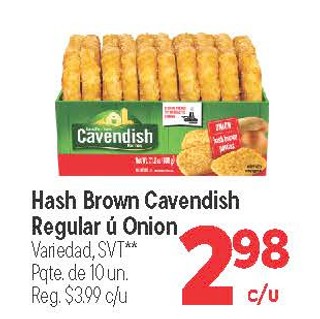 Hash Brown Cavendish Regular ú Onion Variedad, SVT** Pqte de 10 un.