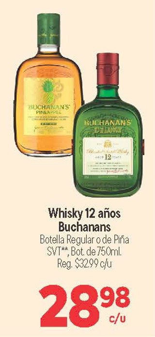 Whisky 12 años Buchanans Botella Regular o de Piña Bot. de 750 ml.