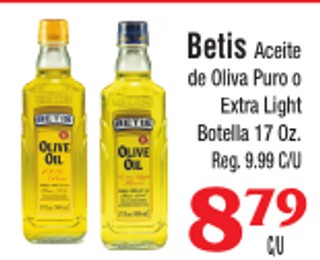 Betis Aceite de Oliva Puro o Extra Light Botella 17 Oz.