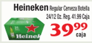 Heineken Regular Cerveza Botella 24/12 Oz. Reg. 41.99 Caja