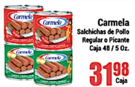 carmela salchichas pollo regular picante caja cormi corni