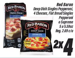 baron french bread deep dish singles pepperoni cheeses, flat supreme