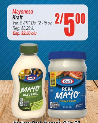 Mayonesa Kraft Var. SVPT* De 12-15 oz.