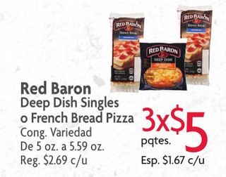 Red Baron Deep Dish Singles o French Bread Pizza Cong. Variedad De 5 oz. a 5.59 oz.