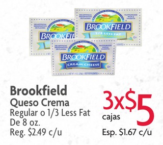 Brookfield Queso Crema Regular o 1/3 Less Fat De 8 oz.