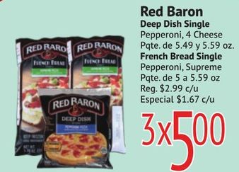 baro baron raron deep dish single pepperoni cheese pqte french bread pepperoni, supreme pqte. reg. $c/u especial