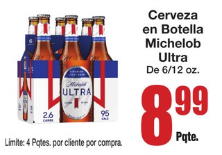 Cerveza en Botella Michelob Ultra De 6/12 oz.