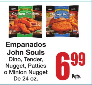 Empanados John Souls Dino, Tender, Nugget, Patties o Minion Nugget De 24 oz.