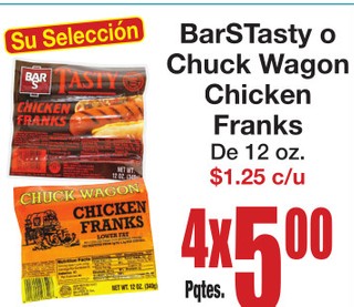 Bar- S Tasty o Chuck Wagon Chicken Franks De 12 oz.