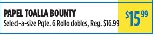 papel toalla bounty seled-a-size pate rollo dobles reg.