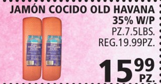 Jamon cocido old havana 35% w/p pz. 7.5 lbs.