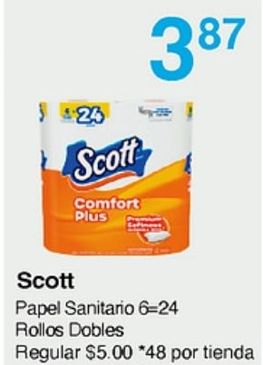 scott comfort plus papel sanitario =rollos dobles regular $*por tienda