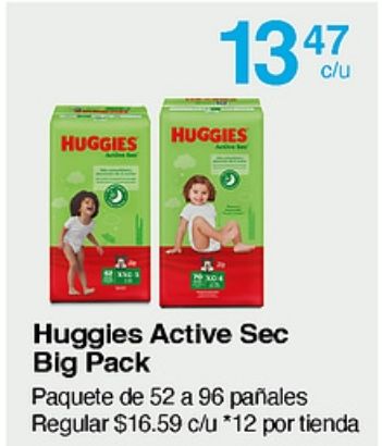 huggies active pack paquete paƱales regular $c/u *por tienda
