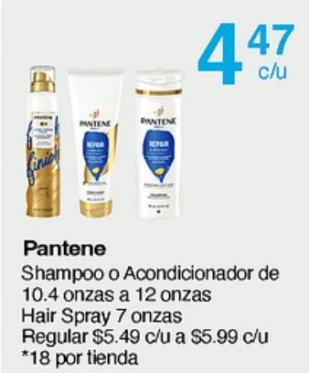 pantene shampoo acondicionador onzas hair spray regular $c/u *por tienda