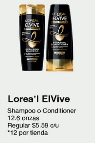 loreal elvive lorral conditioner lorea'l shampoo onzas regular $c/u *por tienda