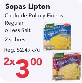 sopas lipton caldo pollo fideos regular less salt sobres $c/u xsapa sapa