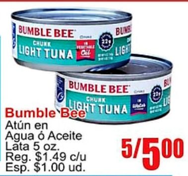 bumble chunk light tuna bumb atĂșn agua aceite lata reg. $c/u esp. $ud.