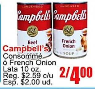 condensed campbell campbells french beef onion soup campbell's consommé lata reg. $c/u esp. $ud.