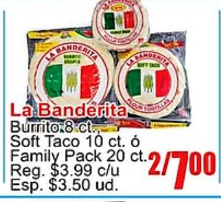 banderita burrito ct/soft taco family pack ctreg. $c/u esp. $ud.
