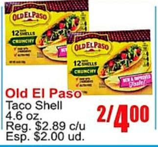 oldelpaso crunchy shells paso taco shell reg. $c/u esp. $ud. impreved fasle