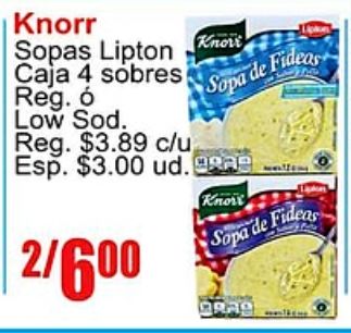 knorr sopas lipton caja sobres sod. reg. $c/u esp. $ud. /knowi sopa fideos know fideas gras