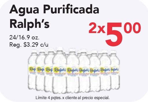 agua purificada ralph's reg. $c/u llll xlímite pqtes. cliente precio especial.