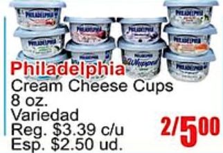 philadelphia cream cheese cups variedad reg. $c/u esp. $ud.
