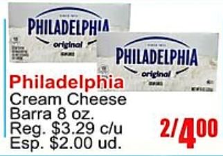 philadelphia original cream cheese barra reg. $c/u esp. $ud.