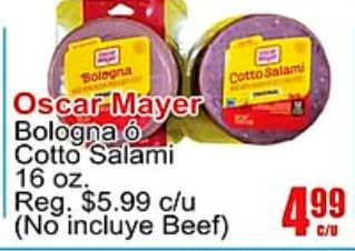 bologna oscar-mayer cotto salami reg. $c/u incluye beef)