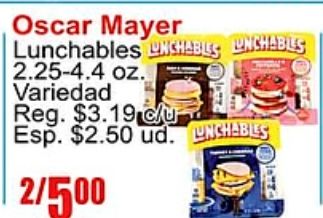 oscar mayer lunchables chables enchables variedad reg. esp. $ud. unchables