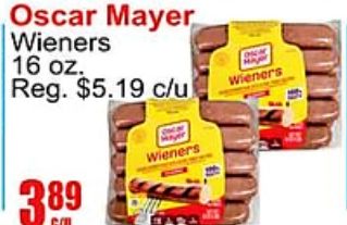 oscar mayer wieners reg. $c/u
