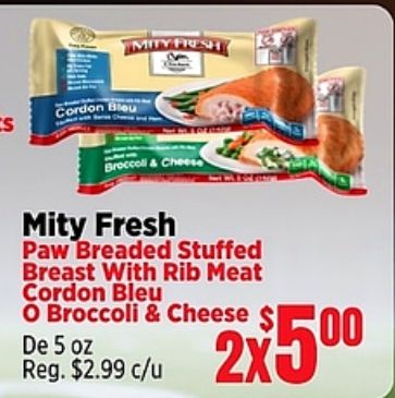 cordon bleu mity fresh broccoll cheese breaded stuffed breast with meat broccoli $c/u