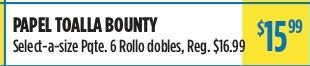 papel toalla bounty select-a-size pate rollo dobles reg.