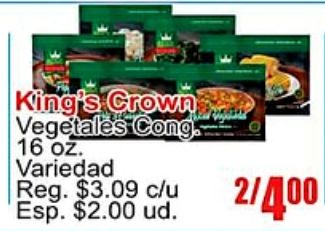 king's crown vegetales cong variedad reg. $c/u esp. $ud.