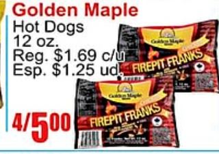 golden maple dogs reg. $c/u esp. firepit franks /firepit