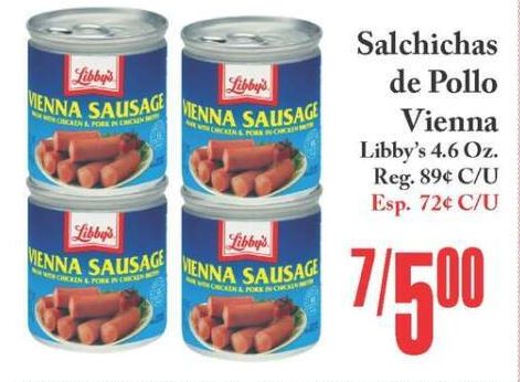 libby's vienna sausage menna salchichas pollo chicken pork chcent reg. esp.