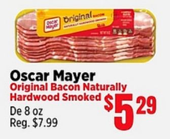 oscar mayer original. original bacon naturally hardwood smoked reg.