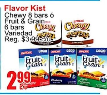 flavor kist chewy bars fruit grain chen variedad $c/us copo