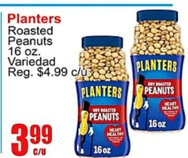 planters roasted peanuts variedad reg. $c/us boasted heart healthy