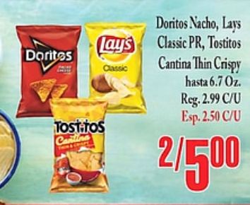 dorites doritos nacho lays lay's classic tostitos cantina thin crispy tost cantine reg. esp.