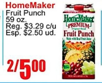 homemaker fruit punch reg. $c/u esp. $ud. premium frait juice