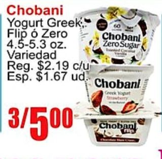 chobani yogurt greek flip zero variedad reg. $c/u esp. $ud. sugar strawberry /choban