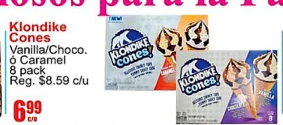 klondike cones vanilla/choco caramel pack reg. $c/u