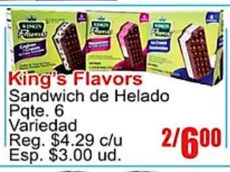 kings king's flavors sandwich helado pate variedad reg. $c/u esp. $ud.