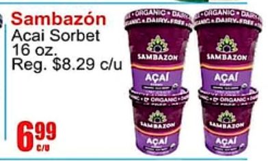 sambazón acai sorbet reg. $c/u organic corganic dairy-free sambazon açai organc