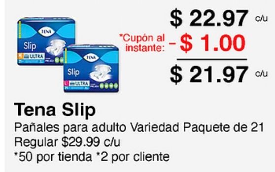 slip heultra tena cupón $instante: pañales adulto variedad paquete regular $c/u *por tienda cliente